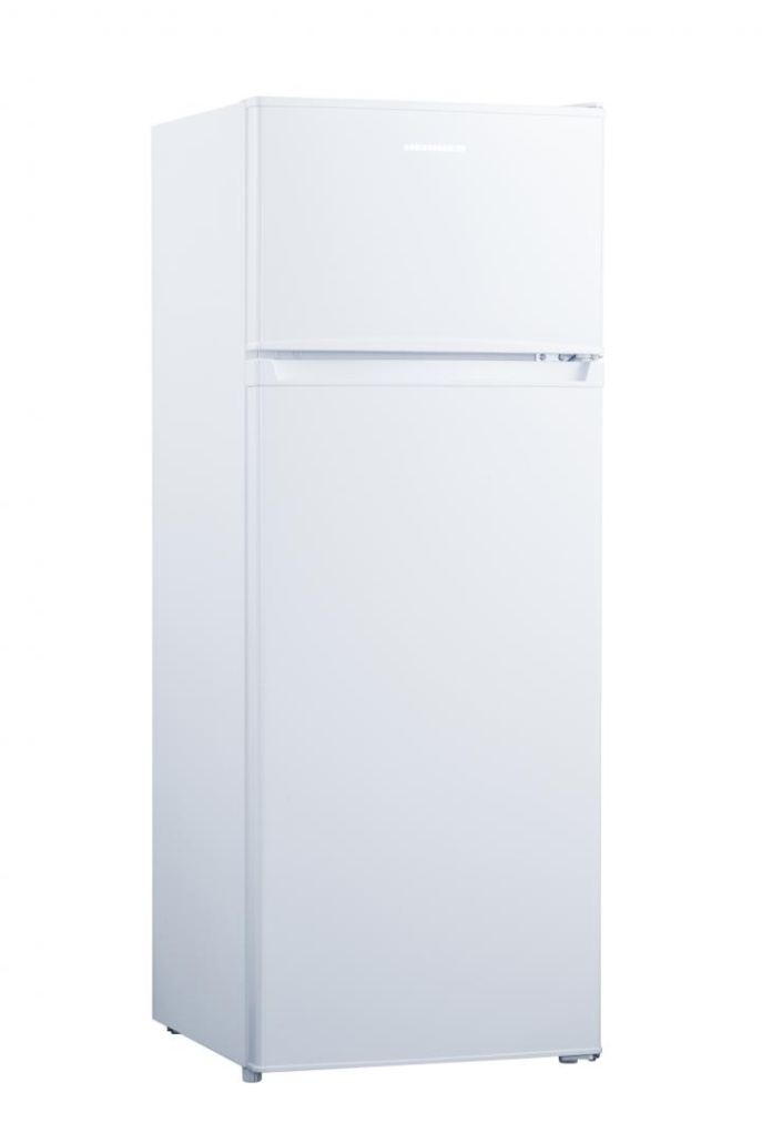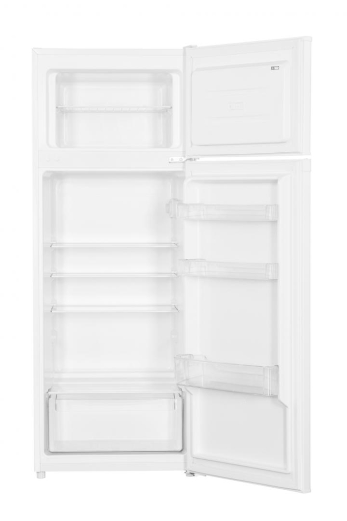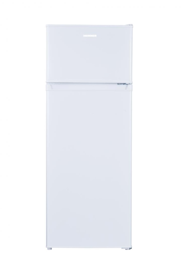 Frigider cu doua usi Heinner HF-H2206F+, clasa energetica: F, capacitate totala: 206L, capacitate frigider: 169L, capacitate congelator: 37L, control mecanic cu termostat ajustabil, lumina LED, 3 rafturi sticla frigider, compartiment pentru fructe si legume, usi reversibile, suport oua, capacitate congelare: 2.4kg/24h, dimensiuni (WxDxH): 54.5 x 55.5 x 143 cm, culoare: Alb