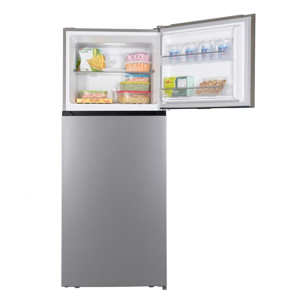 Frigider Heinner HF-HM415NFSE++, Full No Frost, compresor Inverter, clasa energetica: E, capacitate totala: 415 L, capacitate frigider: 321 L, capacitate congelator: 94 L, control electronic cu display Touch, lumina LED, functie Power cool, blocare acces copii, 3 rafturi sticla frigider, compartiment fructe si legume cu control nivel umiditate, 1 raft sticla congelator, usi reversibile, suport oua, tavita cuburi gheata, capacitate congelare: 4.4kg/24h, dimensiuni (WxDxH): 70 x 68 x 178 cm, culoare: Argintiu