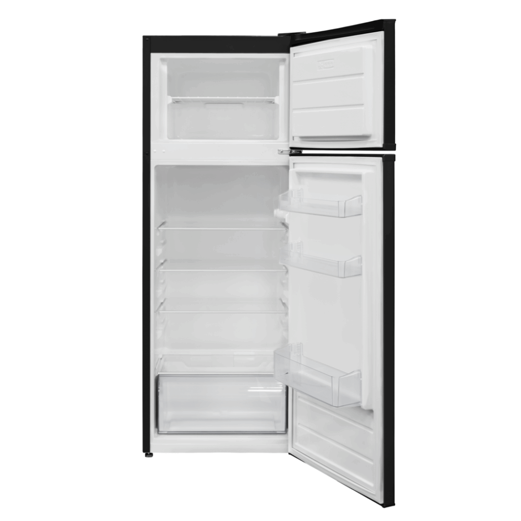 Frigider cu doua usi Heinner HF-V213BKF+, clasa energetica: F, Sistem de racire Less Frost, capacitate totala: 212L, capacitate frigider: 171L, capacitate congelator: 41L, control mecanic cu termostat reglabil, lumina LED, 3 rafturi din sticla, compartiment pentru fructe si legume, suport oua, recipient cuburi de gheata, usi reversibile, suport de oua, tavita cuburi de gheata, capacitate congelare: 2.6kg/24h, dimensiuni (WxDxH): 54 x 57 x 144 cm, culoare: Negru.