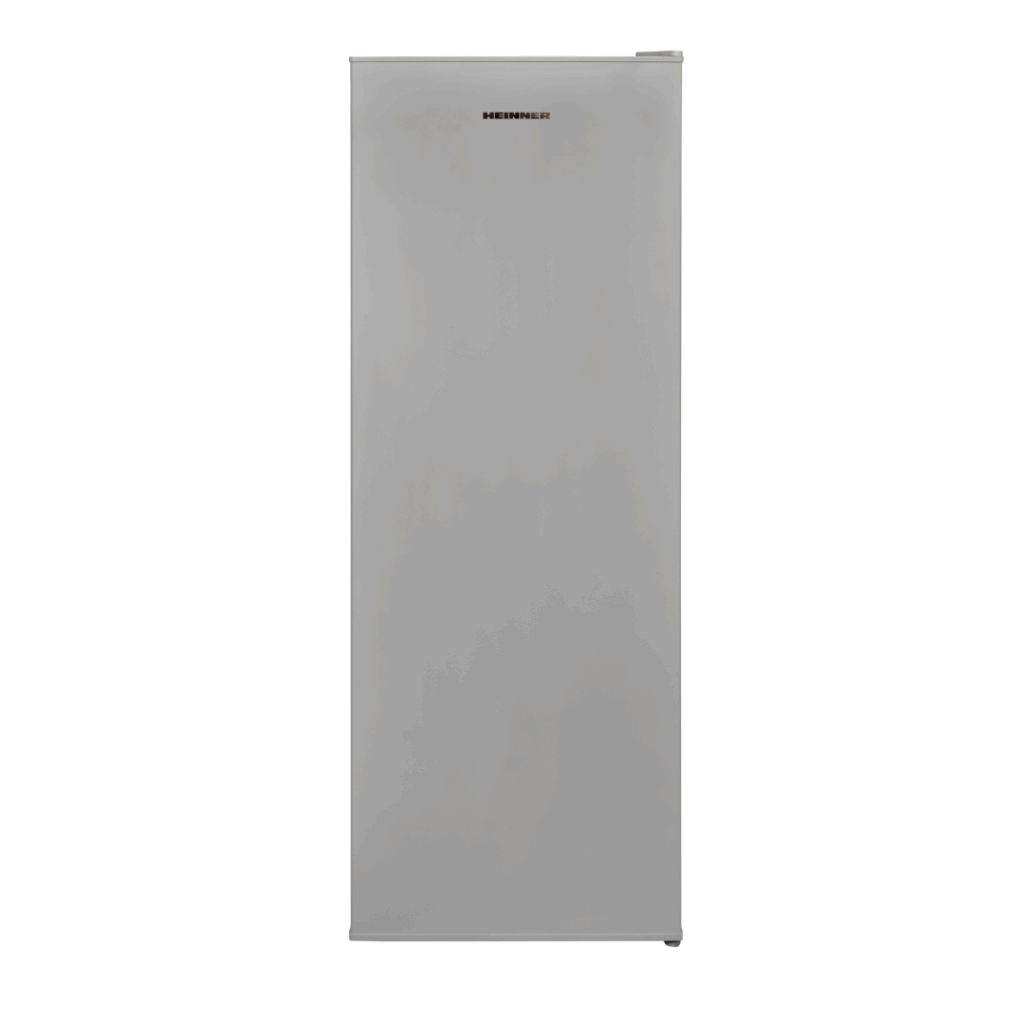 Frigider Heinner HF-V250SF+, clasa energetica: F, capacitate totala: 255L, control mecanic cu termostat ajustabil, lumina LED, dezghetare automata, 4 rafturi din sticla, compartiment pentru fructe si legume, suport oua, usa reversibila, dimensiuni: 54 x 59.5 x 144 cm, culoare: argintiu