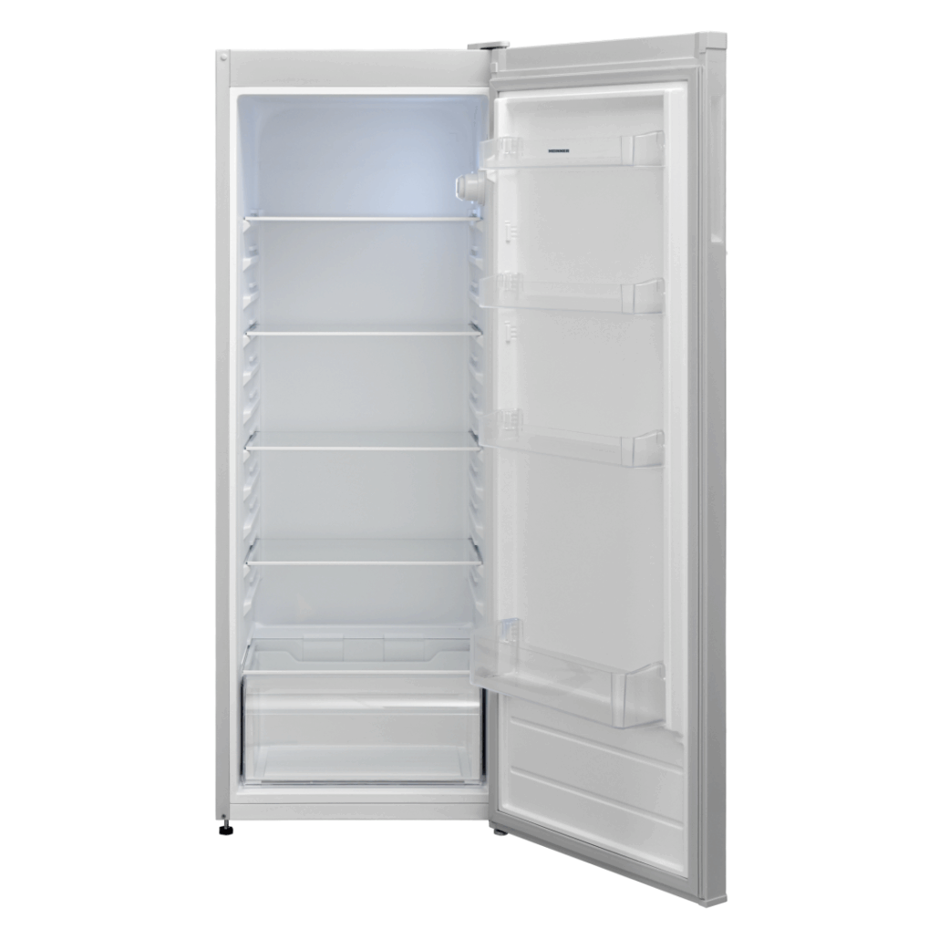Frigider Heinner HF-V255SE++, clasa energetica E, capacitate totala: 255L, capacitate frigider: 255L, control mecanic cu termostat ajustabil, dotari frigider: 4 rafturi din sticla, compartiment pentru fructe si legume, lumina LED, usa reversibila, dimensiuni (LxAxI): 54 x 59.5 x 145.5 cm, culoare: Argintiu