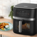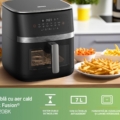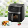 FRITEUZA CU AER CALD HEINNER EffectHeat Fusion HAF-C7DH20BK, 2000W (1500+500W), CAPACITATE: 7L, INCALZIRE DUBLA (SUS-JOS), TEHNOLOGIE CIRCULARE RAPIDA A AERULUI CALD, CAVITATE METALICA, CONTROL DIGITAL, TEMPERATURA 80-200 GRADE C, TIMER 60 MIN, 12 PROGRAME PRESETATE, COS CU INVELIS ANTIADERENT, OPRIRE AUTOMATA, NEGRU