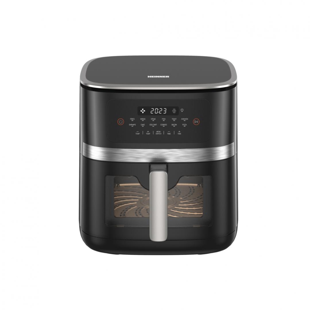 FRITEUZA CU AER CALD HEINNER EffectHeat Fusion HAF-C7DH20BK, 2000W (1500+500W), CAPACITATE: 7L, INCALZIRE DUBLA (SUS-JOS), TEHNOLOGIE CIRCULARE RAPIDA A AERULUI CALD, CAVITATE METALICA, CONTROL DIGITAL, TEMPERATURA 80-200 GRADE C, TIMER 60 MIN, 12 PROGRAME PRESETATE, COS CU INVELIS ANTIADERENT, OPRIRE AUTOMATA, NEGRU