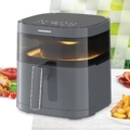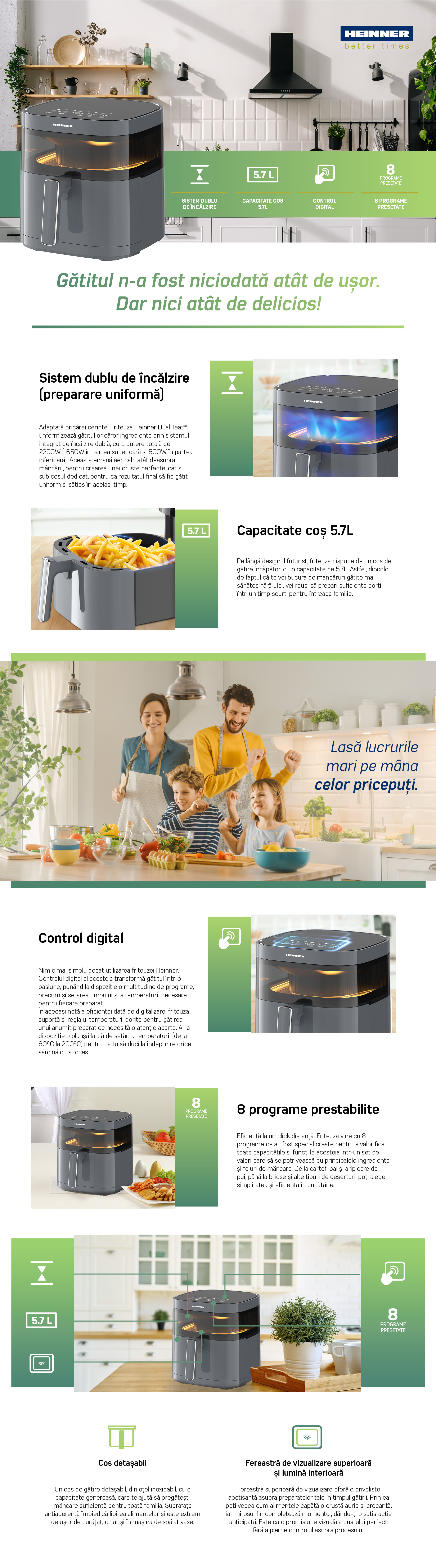 FRITEUZA CU AER CALD HEINNER DualHeat HAF-B6GRY17LG, 1700W, CAPACITATE COS: 5.7L, DISPLAY DIGITAL, INCALZIRE DUBLA, CAVITATE METAL, TEMPERATURA: 80-200°C, TIMER: 60MIN, 8 PROGRAME PRESETATE, COS DETASABIL, FEREASTRA SUPRAVEGHERE, LUMINA INTERNA, AUTO-OPRIRE, GRI ANTRACIT