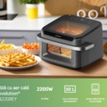 FRITEUZA DUBLA CU AER CALD HEINNER AirBake Revolution HAF-C10DB22GREY, 2200W, CAPACITATE: 10L, TEHNOLOGIE CIRCULARE RAPIDA A AERULUI CALD, CAVITATE METALICA, 2 FERESTRE SUPRAVEGHERE SI LUMINA INTERNA AUTOMATA, TEMPERATURA 80-200 GRADE C, TIMER 60 MIN, 12 PROGRAME PRESETATE, COS DETASABIL CU INVELIS ANTIADERENT, SEPARATOR METALIC PENTRU DUBLA COMPARTIMENTARE, GRI