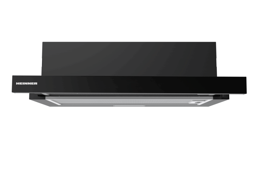 HOTA TELESCOPICA HEINNER HTCH-MD400GBK, 60CM, PUTERE MAXIMA DE ABSORBTIE: 400 M3/H, 2 TREPTE DE VITEZA, MOTOR: 1 X 45W, LUMINA LED: 1 X 1.5W, 2 FILTRE ALUMINIU, DIAMETRU TUB DE EVACUARE: 150 MM, DIMENSIUNI (LXAXI): 59.5X30.8X17.5 CM, CULOARE: NEGRU+STICLA