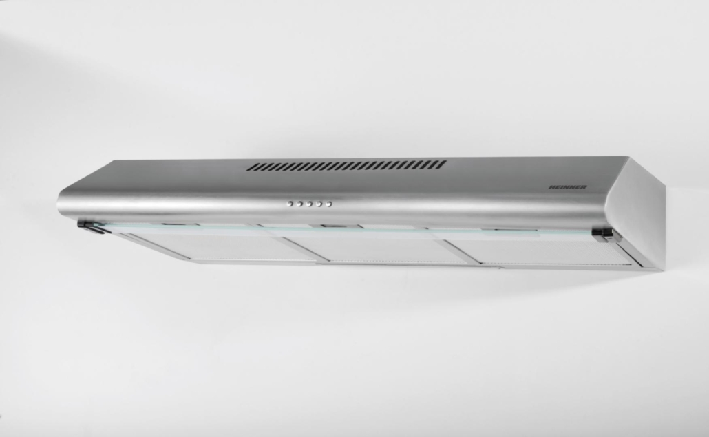 Hota traditionala Heinner HCH-490-SS, 90cm, Putere maxima de absorbtie: 304.5 m3/h, 3 trepte de viteza, Motor: 2 x 60W, Lumina LED: 2 x 2W, 3 filtre aluminiu, Panou sticla frontal, Butoane tip “push”, Diametru tub de evacuare: 120 mm, Dimensiuni (LxAxI): 90x50x15 cm, Culoare: Inox