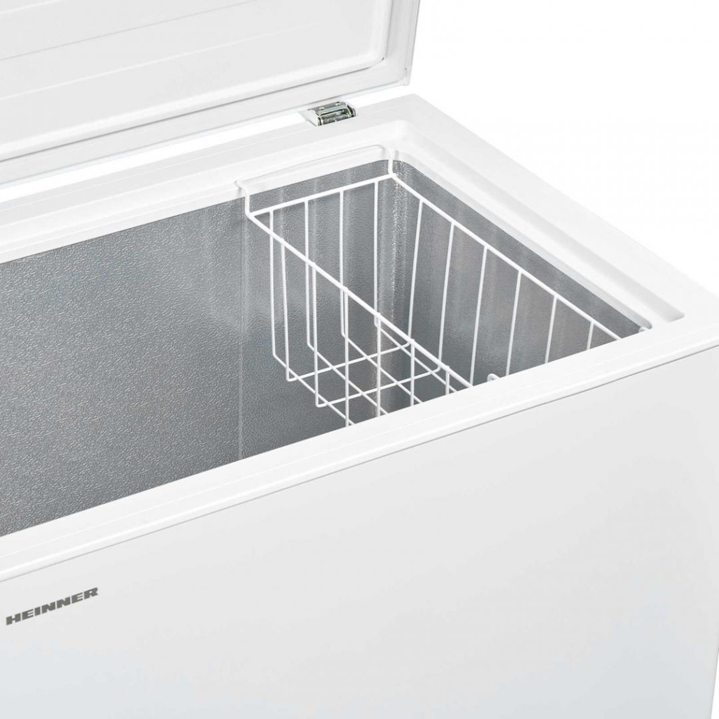 Lada frigorifica Heinner HCF-H205F+, clasa energetica: F, capacitate totala: 198L, control mecanic cu termostat ajustabil, cos din sarma, maner integrat, decongelare manuala, capacitate de congelare: 9kg/24h, dimensiuni (WxDxH): 80.2 × 55.9 × 85.4 cm, culoare: alb.