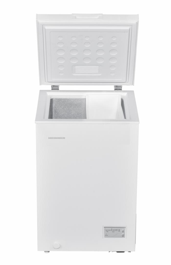 Lada frigorifica Heinner HCF-HM100CE++, clasa energetica: E, functionare convertibila (Frigider/Congelator), capacitate totala: 98L, control electronic, rezistenta la frig (opereaza la temperaturi scazute: pana la -15°C), display rezistent la apa, functie congelare rapida, cos din plastic, maner integrat, decongelare manuala, capacitate de congelare: 6 kg/24h, dimensiuni (WxDxH): 54.5 × 54.5 × 84.5 cm, culoare: Alb