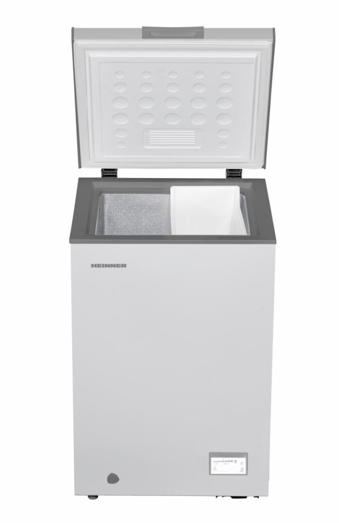 Lada frigorifica Heinner HCF-HM100CSE++, clasa energetica: E, functionare convertibila (Frigider/Congelator), capacitate totala: 98L, control electronic, rezistenta la frig (opereaza la temperaturi scazute: pana la -15°C), display rezistent la apa, functie congelare rapida, cos din plastic, maner integrat, decongelare manuala, capacitate de congelare: 6 kg/24h, dimensiuni (WxDxH): 54.5 × 54.5 × 84.5 cm, culoare: Argintiu