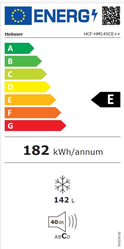 Lada frigorifica Heinner HCF-HM145CE++, convertibila frigider/congelator, clasa energetica: E, capacitate totala: 142L, control electronic, rezistenta la frig (opereaza la temperaturi scazute: -15°C), rezistenta la variatii de tensiune 175~255V, display rezistent la apa, functie congelare rapida, 1 cos, decongelare manuala, capacitate de congelare: 7kg/24h, dimensiuni (WxDxH): 70.5 × 54.5 × 84.5 cm, culoare: alb
