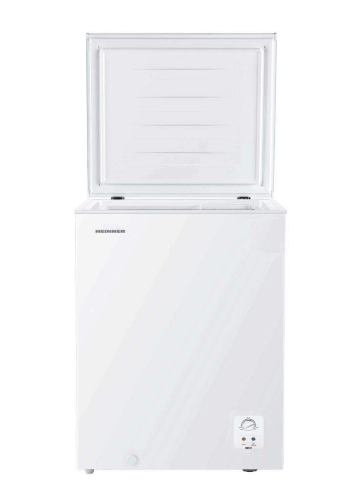 Lada frigorifica Heinner HCF-HS142E++, capacitate totala: 142L, clasa energetica: E, control electronic cu termostat ajustabil, functie Super congelare, cos din sarma, maner integrat, decongelare manuala, capacitate de congelare: 7kg/24h, dimensiuni (WxDxH): 62.5 × 55.9 × 85.4 cm, culoare: Alb