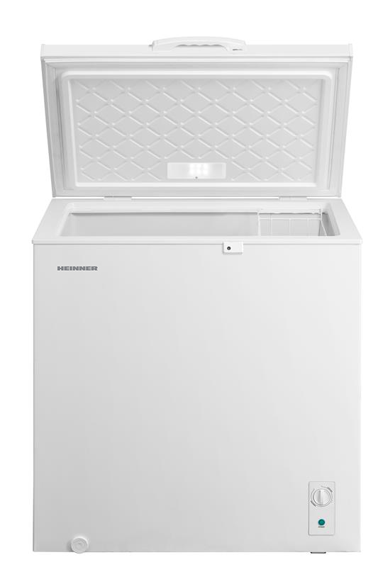 Lada frigorifica Heinner HCF-M198INVCE++, clasa energetica: E, compresor inverter, functionare convertibila (Frigider/Congelator), capacitate totala: 198L, control mecanic, lumina LED, 1 cos, maner extern cu incuietoare, decongelare manuala, capacitate de congelare: 9kg/24h, dimensiuni (WxDxH): 77 x 56 x 85 cm, culoare: Alb