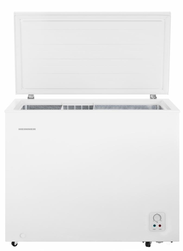 Lada frigorifica Heinner HCF-N250F+, clasa energetica: F, capacitate totala: 245L, control mecanic cu termostat ajustabil, cos din sarma, maner exterior, decongelare manuala, role pentru transportare usoara, capacitate de congelare: 12kg/24h, dimensiuni (WxDxH): 100.2 x 59.7 x 84.2 cm, culoare: alb