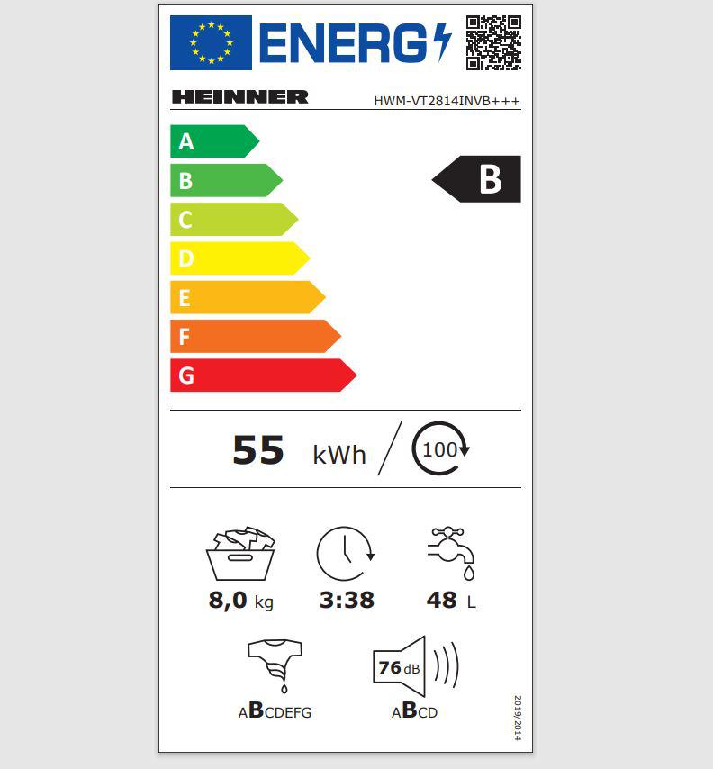 MASINA DE SPALAT RUFE HEINNER HWM-VT2814INVB+++, CAPACITATE 8KG, VITEZA DE CENTRIFUGARE 1400RPM, CLASA ENERGETICA B, MOTOR INVERTER, 15 PROGRAME, DISPLAY LED, PROGRAM RAPID 15 MIN, PROGRAM SCURT 60 MIN, PROGRAM ALLERGY SAFE, FUNCTIE START INTARZIAT, CLATIRE SUPLIMENTARA, FUNCTIE ANTI-SIFONARE, SISTEM ECO LOGIC, SISTEM DETECTARE SPUMA, SISTEM DE CONTROL ELECTRONIC AL BALANSULUI, BLOCARE ACCES COPII, DIMENSIUNI ( LXAXI): 59.7X52.7X84.5 CM, CULOARE: ALB