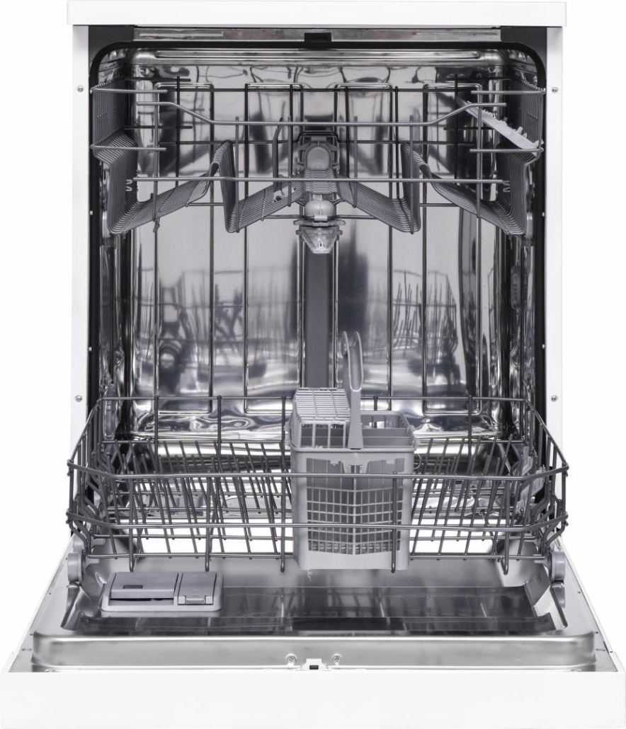 Masina de spalat vase Heinner HDW-FS6062WE++, clasa energetica E, 12 seturi, control electronic, 6 programe de spalare, program Rapid 30’, program Pahare/Delicate, program ECO, program Prespalare, optiune incarcare la jumatate, pornire programabila (3-6-9H), cos superior ajustabil pe inaltime (gol), protectie impotriva inundatiilor – Aquastop, consum apa: 12L/ciclu de spalare, dimensiuni (WxDxH): 59.8 x 59.8 x 85 cm, culoare: alb