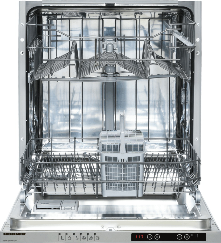 Masina de spalat vase incorporabila Heinner HDW-BI6006IE++, 12 seturi, clasa energetica E, control electronic, display LED, 6 programe de spalare, program rapid 30’, program Hygiene 70°C, program Auto Intensiv, pornire programabila (1-19H), optiune incarcare la jumatate, cos superior ajustabil pe inaltime (incarcat), protectie impotriva inundatiilor – Aquastop, semnal sonor finalizare program, consum apa: 12L/ciclu de spalare, dimensiuni: 82 x 59.8 x 55 cm