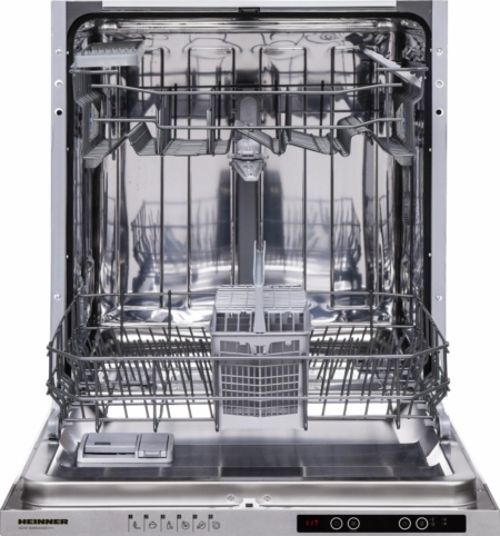 Masina de spalat vase incorporabila Heinner HDW-BI6614AID+++, clasa energetica D, 14 seturi, control electronic, display LED, 6 programe de spalare, program Rapid 30’, program Hygiene 70°C, program Auto Intensiv, sistem deschidere automata usa, pornire programabila (1-19H), optiune incarcare la jumatate, cos superior ajustabil pe inaltime (incarcat), protectie impotriva inundatiilor – Aquastop, semnal sonor finalizare program, consum apa: 12L/ciclu de spalare, culoare: alb