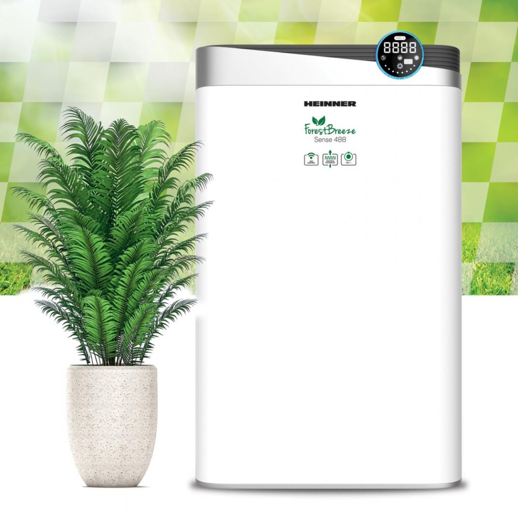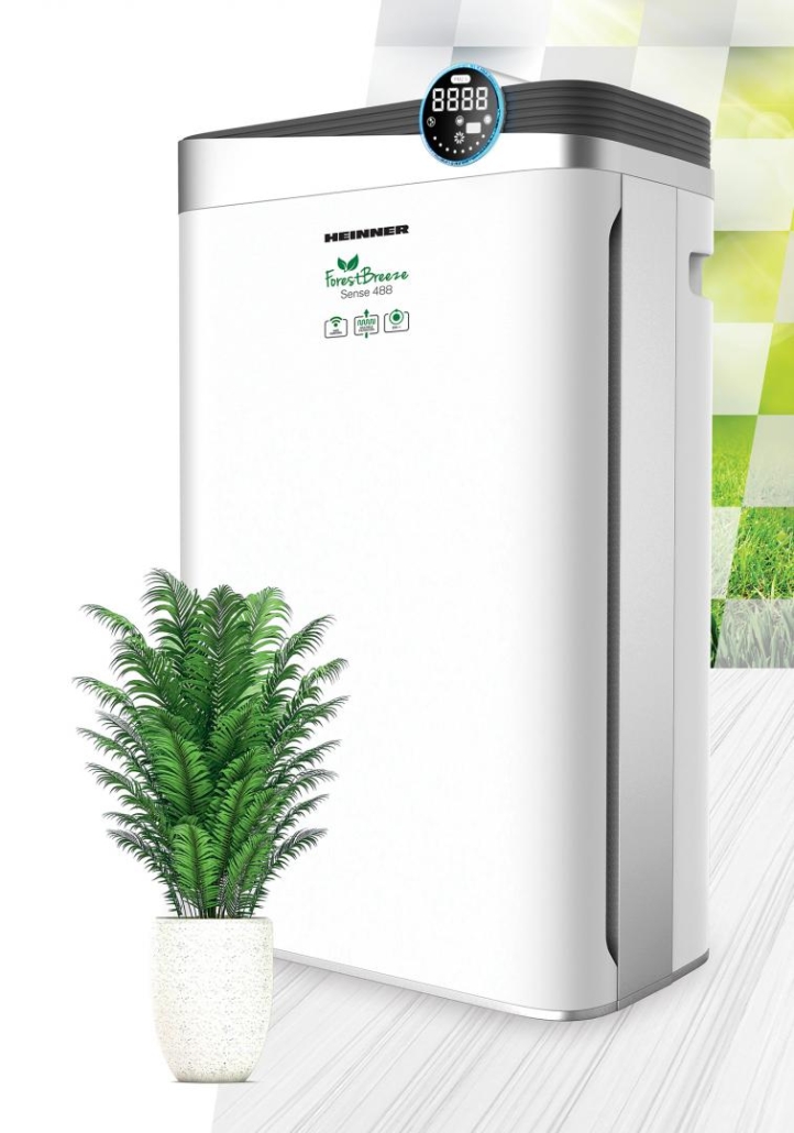 Purificator de aer Heinner Forest Breeze Sense 488 HPA-488WIFI, CADR (flux de aer): 488m3/h, arie acoperire: 34~58mp, control Touch si display, control WIFI, generator ioni negativi, lampa UV, filtru compus (include HEPA h11), timer 12h, 4 viteze, mod auto, mod sleep, 85W, functie blocare acces copii, telecomanda, alb
