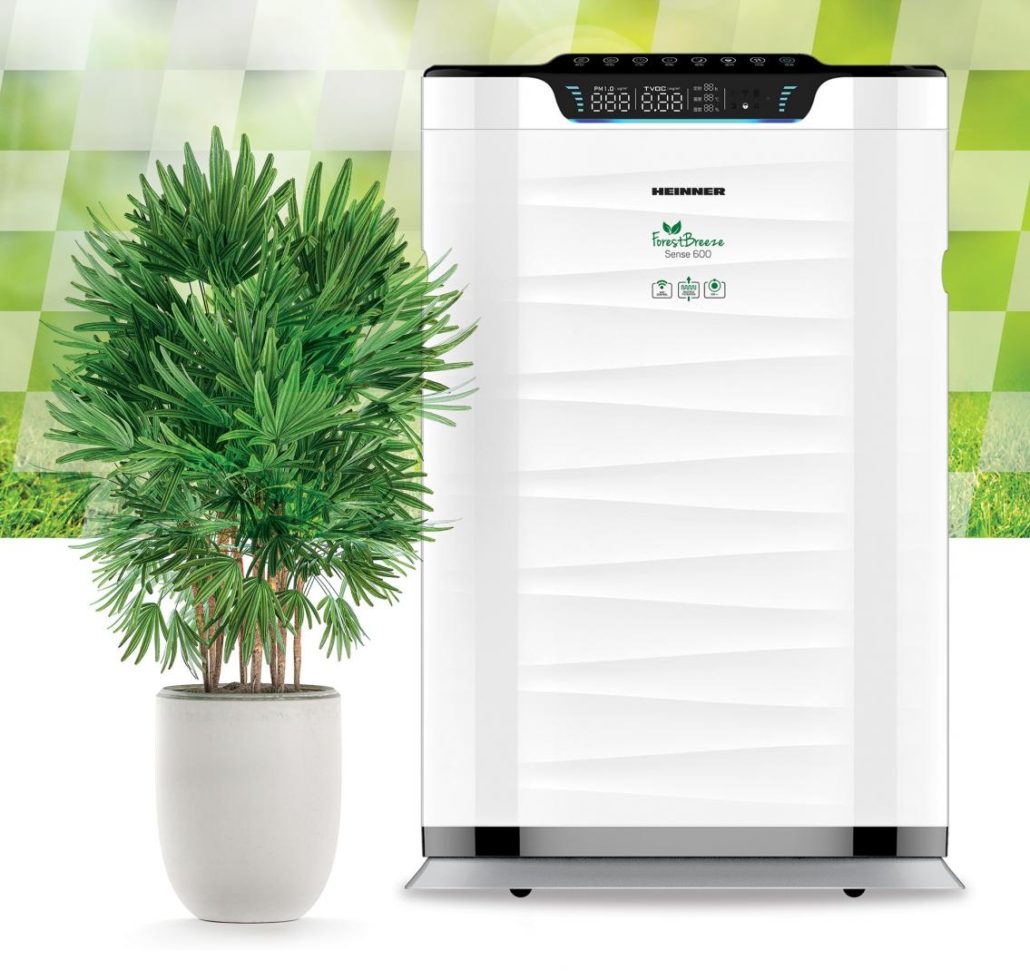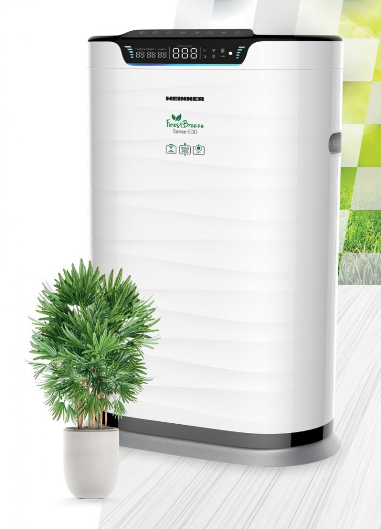 Purificator de aer Heinner HPA-600WIFI, arie de acoperire: 42~72m², CADR (flux de aer): 600m³/h, control tactil cu display, control WIFI, telecomanda, generator de ioni negativi, senzor PM 2.5, display digital PM 2.5, indicator calitate aer – culoare verde/albastru/galben/rosu, filtru compus (include filtru HEPA H11), temporizator 12 h, 5 viteze, indicator temperatura, indicator umiditate, mod Auto, mod Sleep, purificare rapida a fumului de tigara, blocare access copii, indicator inlocuire filtru, sistem de siguranta in caz de asamblare necorespunzatoare , functie de oprire in caz de rastunare, sensor de lumina, roti pentru manevrare usoara, putere: 75W