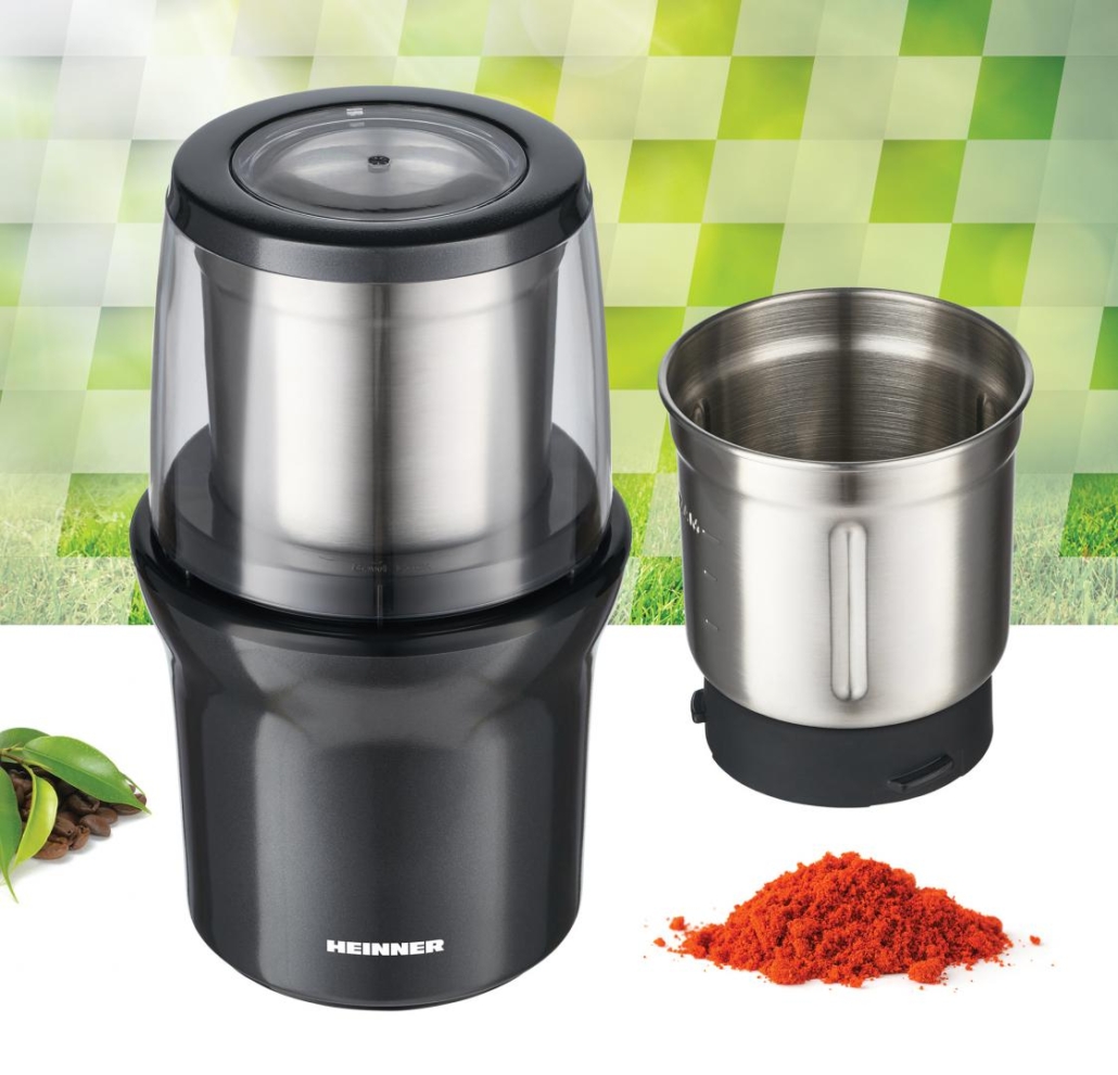 Rasnita electrica HEINNER HCG-200DG2, 2 recipiente din inox detasabile, rasnire uscata si