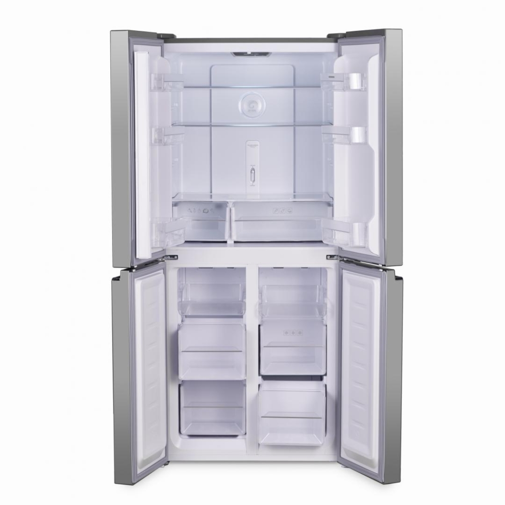 Side by side Heinner HSBS-H421MNFXE++, Full No Frost, Compresor inverter, Clasa energetica: E, Display LED cu control touch, Capacitate totala: 421L, Capacitate frigider: 271L, Capacitate congelator: 150L, Lumina LED, Functie ECO, Functie "Vacanta", Functie "Super congelare", Alarma usa deschisa, Blocare acces copii, 3 rafturi din sticla frigider, 1 compartiment pentru fructe si legume cu control umiditate, 1 compartiment convertibil Dual Fresh zone (chiller/fructe si legume), 4 sertare congelator, 2 tavite glisante congelator, Dimensiuni (WxDxH): 79 x 70 x 180 cm, Culoare: Aspect inox