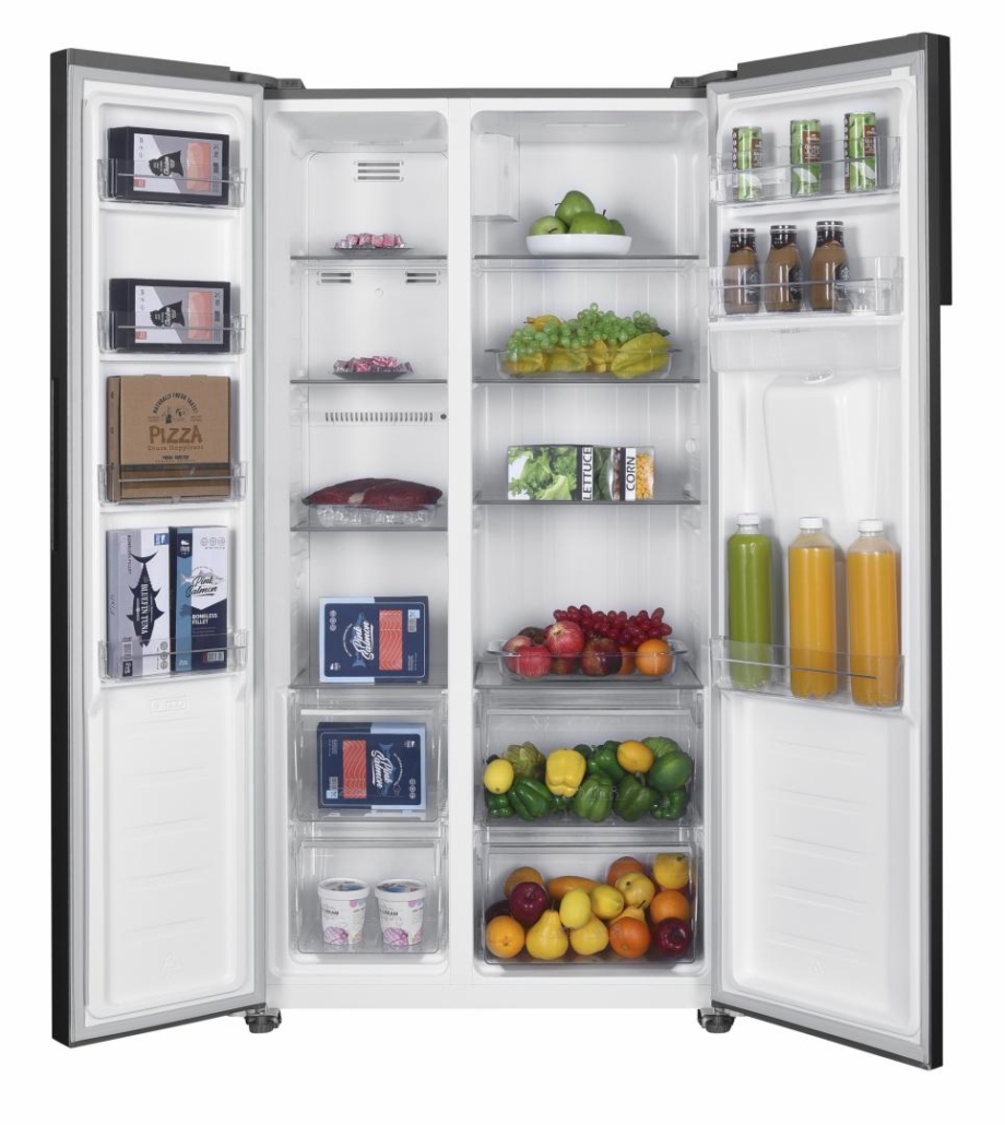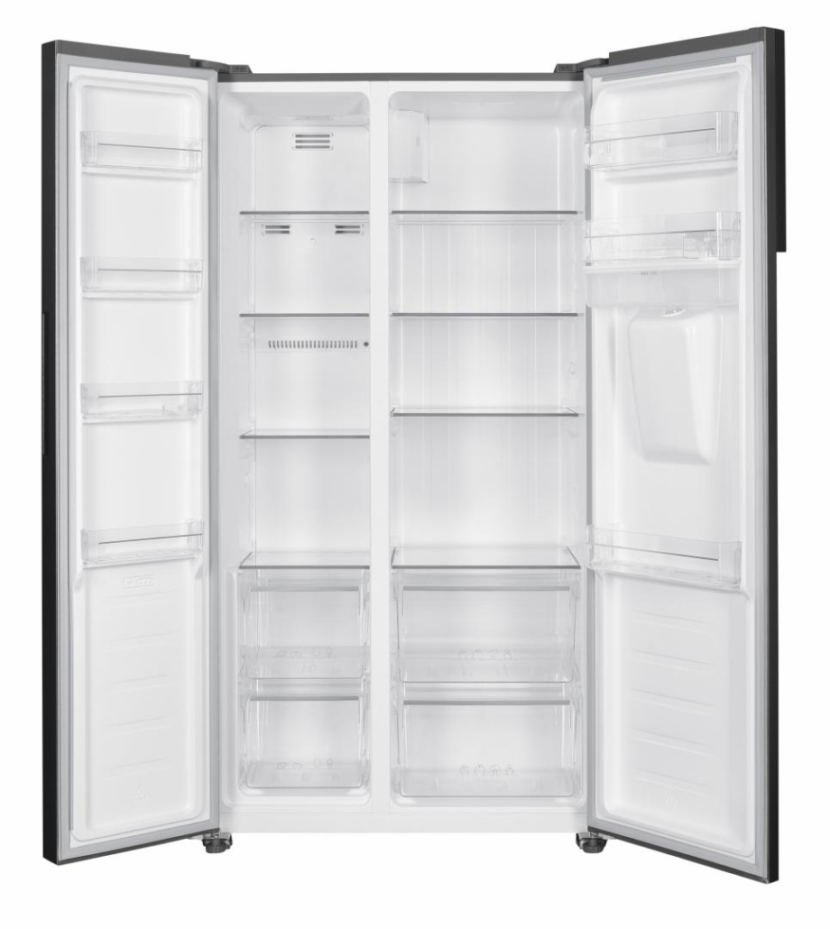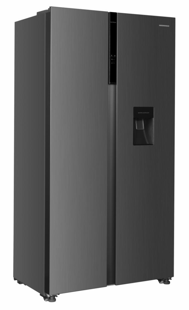 Side by side Heinner HSBS-H439NFXWDE++, Full No frost, Compresor inverter, Dozator de apa, Clasa energetica E, Display LED cu control touch, Capacitate totala: 439L, Capacitate frigider: 288L, Capacitate congelator: 151L, Lumina LED, Functie SMART, Functie ECO, Super cooling, Super freezing, Alarma usa deschisa, Blocare acces copii, 3 rafturi din sticla frigider, 2 compartimente pentru fructe si legume, 3 rafturi congelator, 2 sertare congelator, Dimensiuni produs : 90 x 59.5 x 177 cm, Culoare: Aspect inox