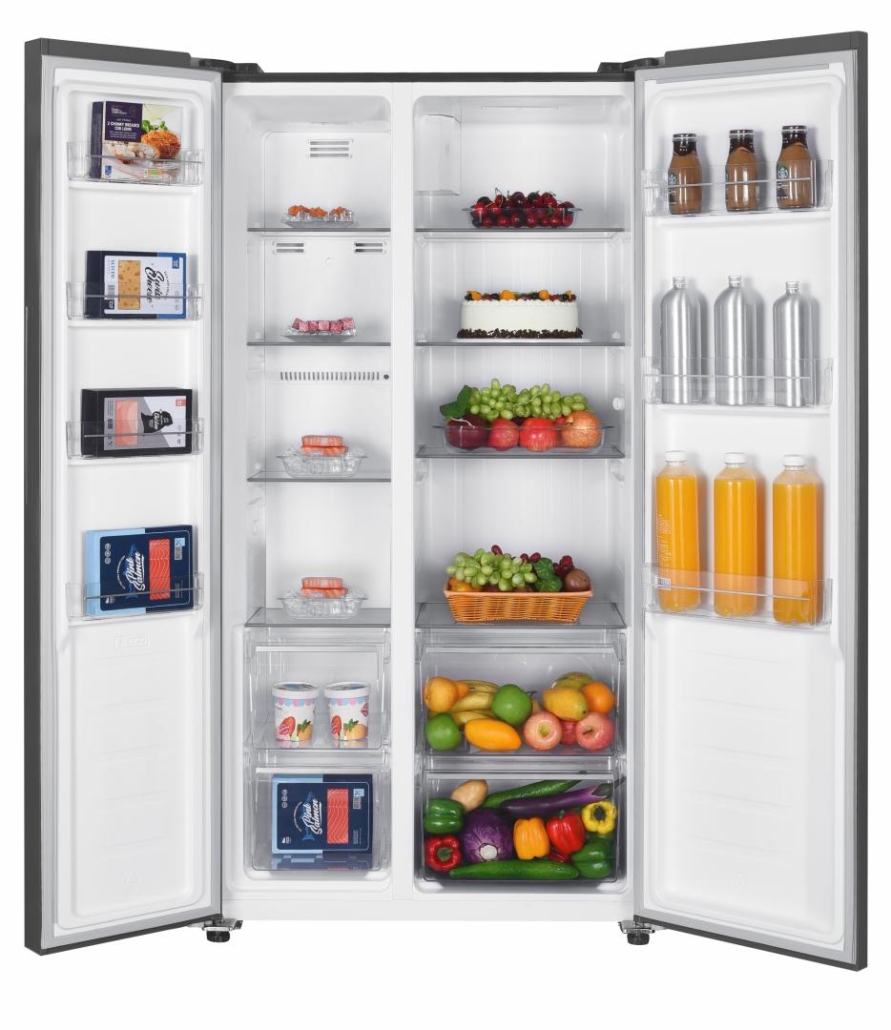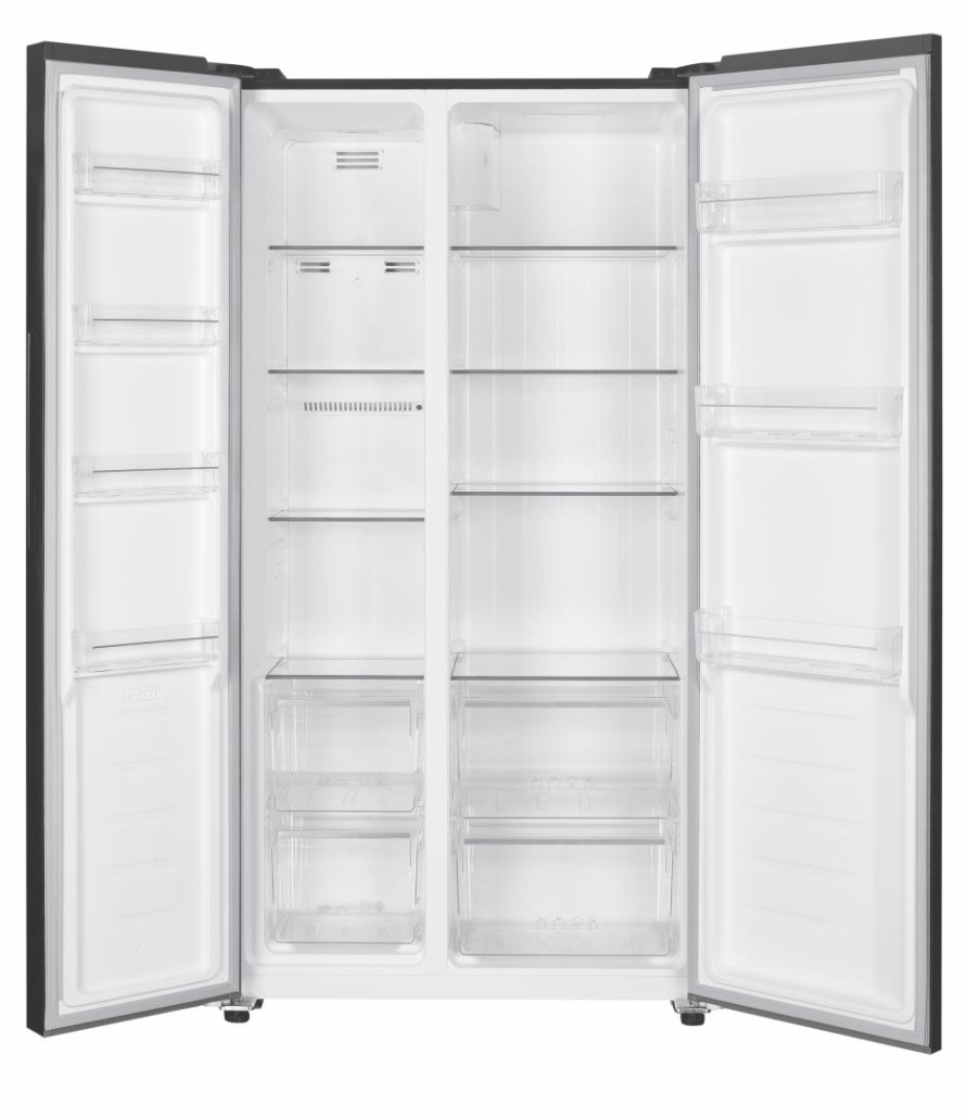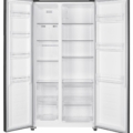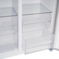 Side by side Heinner HSBS-H442NFGWHE++, Full No frost, Compresor inverter, Clasa energetica E, Display LED cu control touch, Capacitate totala: 442L, Capacitate frigider: 291L, Capacitate congelator: 151L, Lumina LED, Functie SMART, Functie ECO, Super Cooling, Super freezing, Alarma usa deschisa, Blocare acces copii, 3 rafturi din sticla frigider, 2 compartimente pentru fructe si legume, 3 rafturi congelator, 2 sertare congelator, Dimensiuni (WxDxH): 90 x 59 x 177 cm, Culoare: sticla alba