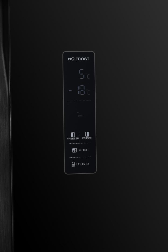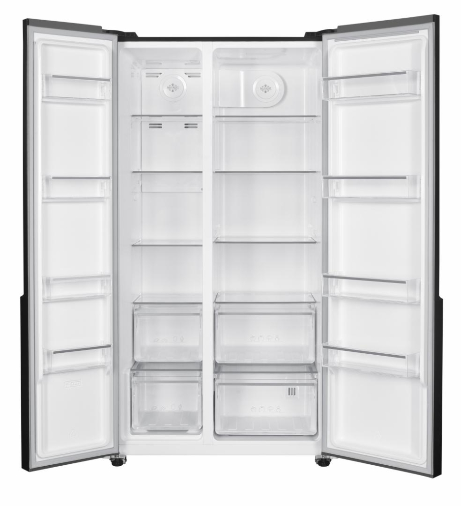 Side by side Heinner HSBS-H532NFGBKF+, Full No Frost, Clasa energetica F, Display touch, Control electronic, Capacitate totala: 532L, Capacitate frigider: 347L, Capacitate congelator: 185L, Functie SMART, Functie ECO, Super Cooling, Super freezing, Alarma usa deschisa, Blocare acces copii, 3 rafturi din sticla frigider, 2 compartimente pentru fructe si legume, 3 rafturi congelator, 2 sertare congelator, Dimensiuni (WxDxH): 90 x 66 x 177 cm, Culoare: Sticla neagra