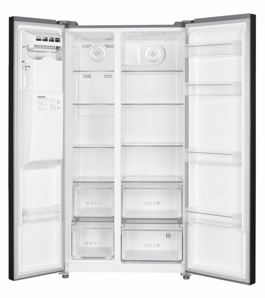 SIde by side Heinner HSBS-HM513NFIMDXE++, Full No frost, compresor Inverter, dozator de apa si gheata, clasa energetica: E, display LED cu control touch, capacitate totala: 513L, capacitate frigider: 344L, capacitate congelator: 169L, lumina LED, functie Smart, functie ECO, Super Cooling, Super Freezing, alarma usa deschisa, blocare acces copii, 3 rafturi din sticla frigider, 2 compartimente pentru fructe si legume, 3 rafturi congelator, 2 sertare congelator, Capacitate dozator de apa: 1.5L, Capacitate compartiment depozitare cuburi de gheata: 1.5Kg, alimentare dozator de la retea, dimensiuni (WxDxH): 90 x 66 x 177 cm cm, culoare: Inox antracit