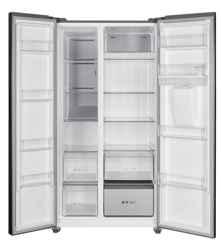 Side by side Heinner HSBS-HM592NFDXWDE++, Total No Frost, capacitate totala: 592L, capacitate frigider: 367L, capacitate congelator: 225L, clasa energetica E, compresor Inverter, display LED cu control touch, dozator de apa, sistem “Multi Air-Flow”, tehnologie InoxCool, sistem MultiClimate - 3 zone cu control independent al temperaturii (Frigider, congelator, zona convertibila), functie "Holiday", functie ECO, functie Super congelare, dotari frigider: 3 rafturi din sticla, compartiment pentru fructe si legume Compartiment convertibil frigider/congelator - temperaturi intre 5°C si -3°C, capacitate compartiment convertibil: 33L, dotari congelator: 3 rafturi din sticla, 2 sertare, capacitate dozator de apa: 3L, lumina LED, alarma usa deschisa, blocare acces copii, dimensiuni (LxAxI): 90 x 73 x 177 cm, culoare: Inox antracit