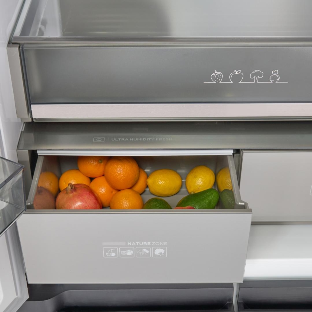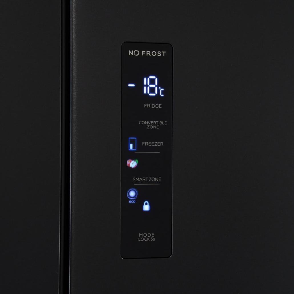 Side by side Multidoor Heinner HSBS-HM505MDSINFDXE++, Slot-in - permite incorporarea in mobila, Total No Frost, capacitate totala: 505L, capacitate frigider: 349L, capacitate congelator: 156L, clasa energetica: E, compresor Inverter, display LED cu control touch, sistem Multi Air-Flow, tehnologie InoxCool, sistem MultiClimate - 4 zone cu control independent al temperaturii (Frigider, congelator, zona convertibila, zona Smart), functie "Holiday", functie ECO, functie Super racire, functie Super congelare, dotari frigider: 2 rafturi din sticla, compartiment pentru fructe si legume, compartiment cu nivel de umiditate controlat, compartiment Smart - temperaturi intre -3 °C si +3 °C, dotari congelator: 4 sertare, 2 tavite pentru pizza, compartiment convertibil frigider/congelator - temperaturi intre -20 °C si +5 °C, capacitate compartiment convertibil: 80L, lumina LED, alarma usa deschisa, blocare acces copii, dimensiuni (WxDxH): 90.5 x 59.7 x 190.2 cm, culoare: Inox Antracit