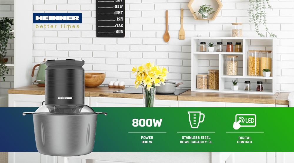 TOCATOR DE LEGUME HEINNER HMC-KD800SS, CONTROL DIGITAL, PUTERE: 800W, CAPACITATEA BOLULUI: