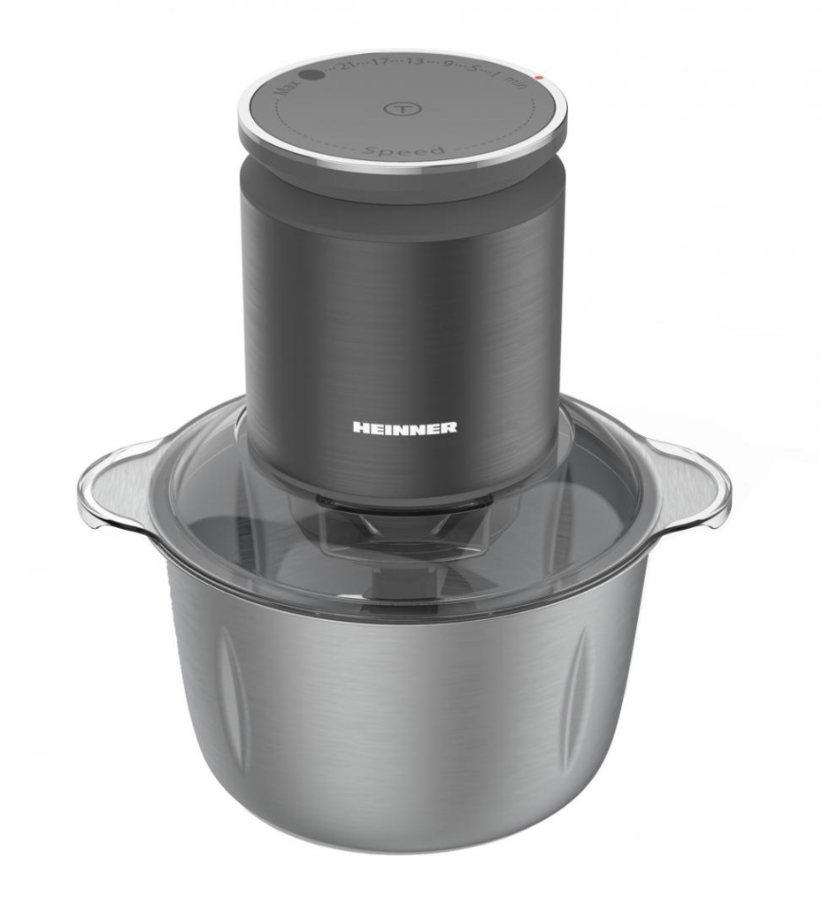TOCATOR DE LEGUME HEINNER HMC-KD800SS, CONTROL DIGITAL, PUTERE: 800W, CAPACITATEA BOLULUI: 3L, VITEZE VARIABILE, 3 LAME DIN INOX, GRI ANTRACIT