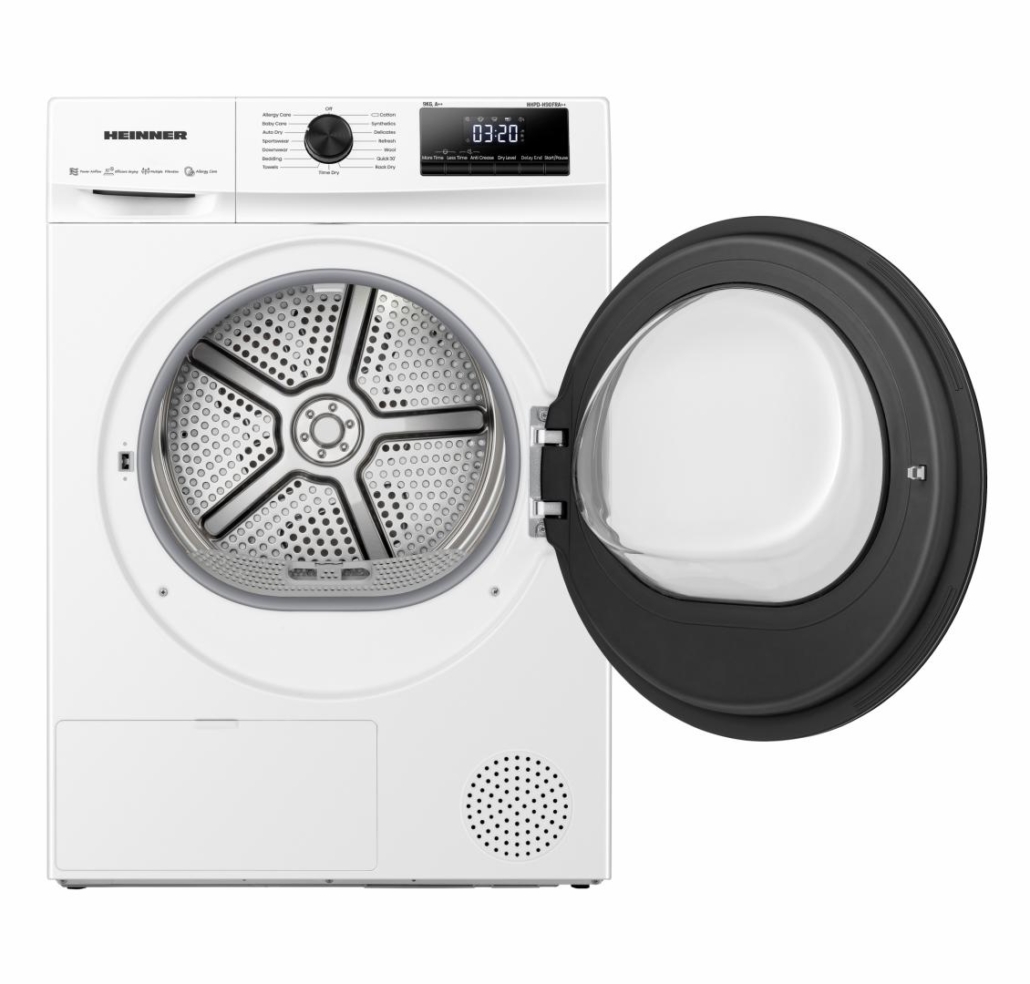 USCATOR DE RUFE CU POMPA DE CALDURA HEINNER HHPD-H90FRA++, CAPACITATE INCARCARE 9KG, CLASA ENERGETICA D, 15 PROGRAME DE USCARE, DISPLAY LED, ALLERGY CARE, PROGRAM RAPID 30 MIN, PROGRAM BABY CARE, FUNCTIE START INTARZIAT, FUNCTIE ANTI-SIFONARE, LUMINA CUVA, FLEXRACK SUPORT, SELECTOR NIVEL USCARE, INDICATOR CURATARE FILTRU SCAME, INDICATOR REZERVOR COLECTARE APA PLIN, BLOCARE ACCES COPII, DIMENSIUNI ( LXAXI): 59.5X61.0X84.5 CM, CULOARE: ALB