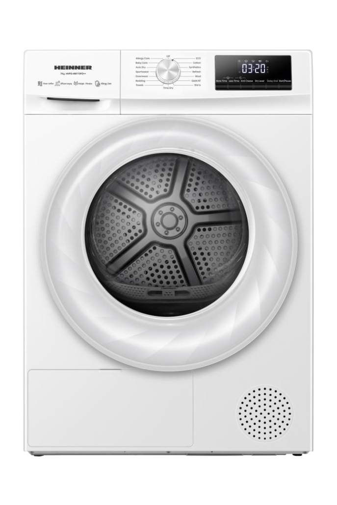 USCATOR DE RUFE CU POMPA DE CALDURA HEINNER HHPD-HMY70FD++, CAPACITATE INCARCARE 7KG, CLASA ENERGETICA D, DISPLAY DIGITAL, LUMINA CUVA, 15 PROGRAME, SUPORT INCALTAMINTE, PROGRAM BABY CARE, PROGRAM LANA, PROGRAM ECO, FUNCTIE ANTI SIFONARE, SELECTOR NIVEL USCARE, BLOCARE ACCES COPII, INDICATOR CURATARE FILTRU SCAME, INDICATOR REZERVOR COLECTARE APA PLIN, DIMENSIUNI(LxAxI): 59.5x58x84.5, CULOARE: ALB