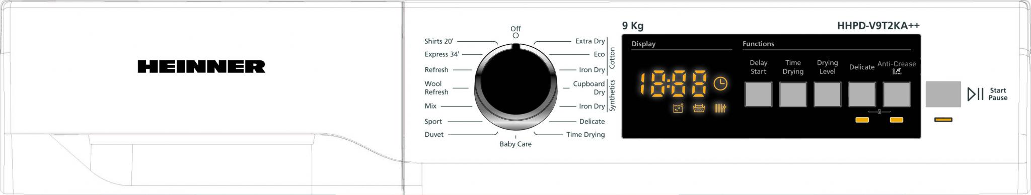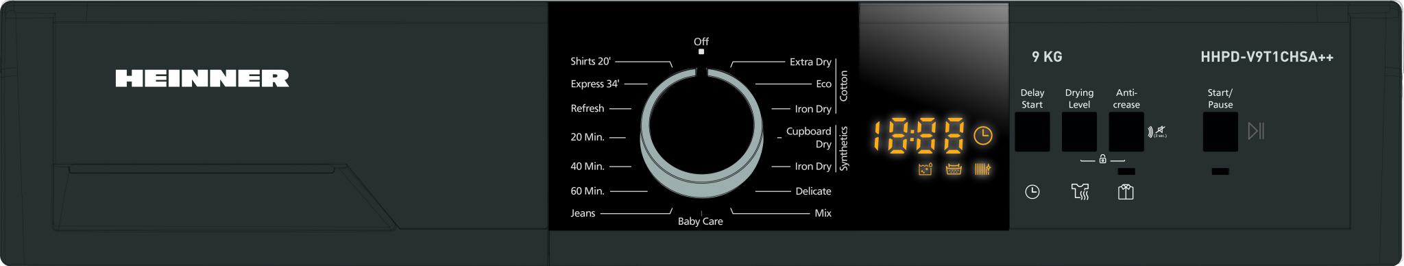 Uscator de rufe cu pompa de caldura Heinner HHPD-V7T1CHA++, Capacitate incarcare 7kg, Clasa energetica E, 15 programe de uscare, Display LED, Program rapid camasi 20 min, Program expres 34 min, Program Baby Care, Functie Start intarziat, Functie anti-sifonare, Lumina cuva, Selector nivel uscare, Indicator curatare filtru scame, Indicator rezervor colectare apa plin, Blocare acces copii, Dimensiuni ( LxAxI): 52.5x59.6x84.5 cm, Culoare: Alb