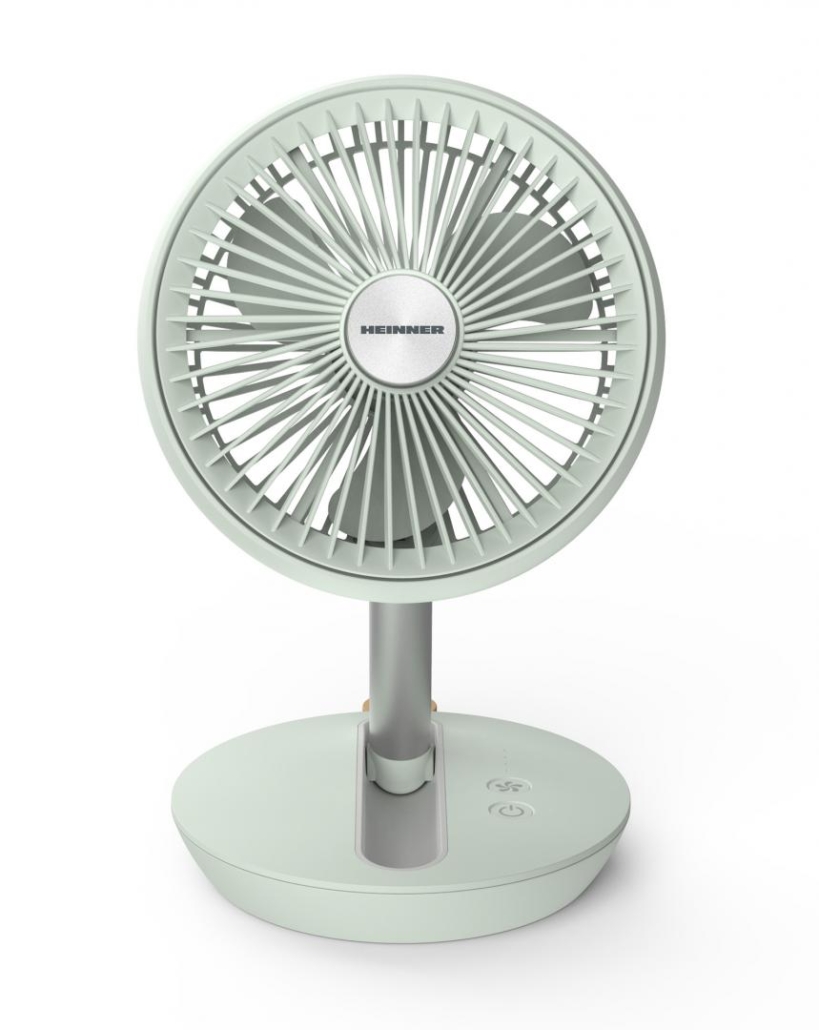 Ventilator pliabil HEINNER HMF-LC4000GR, baterie: 4000mAh, reincarcabil adaptor type-c, pliabil 180° - portabil si usor de depozitat, 4 trepte de viteza, control digital, timp functionare: 4h - max, 15h - min, functie dimmer, putere: 5W, inaltime max 29 cm, verde