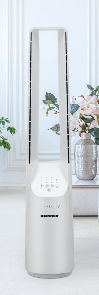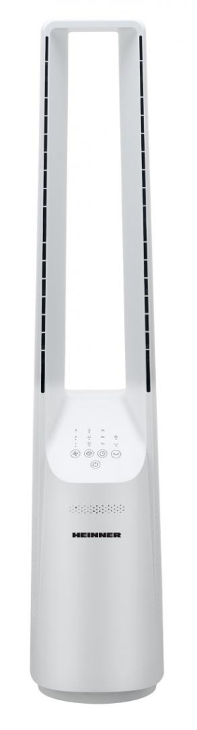 VENTILATOR TURN DIGITAL HEINNER HTFB-M33WH, TEHNOLOGIE CycloneFlow, DESIGN FARA PALETE, MOTOR DC, SENSOR DE TEMPERATURA, 6 VITEZE, 3 MODURI VENTILARE, RACIRE IN UNGHI DE 60 GRADE- PENTRU SUPRAFETE DE 8-10 M, SILENT