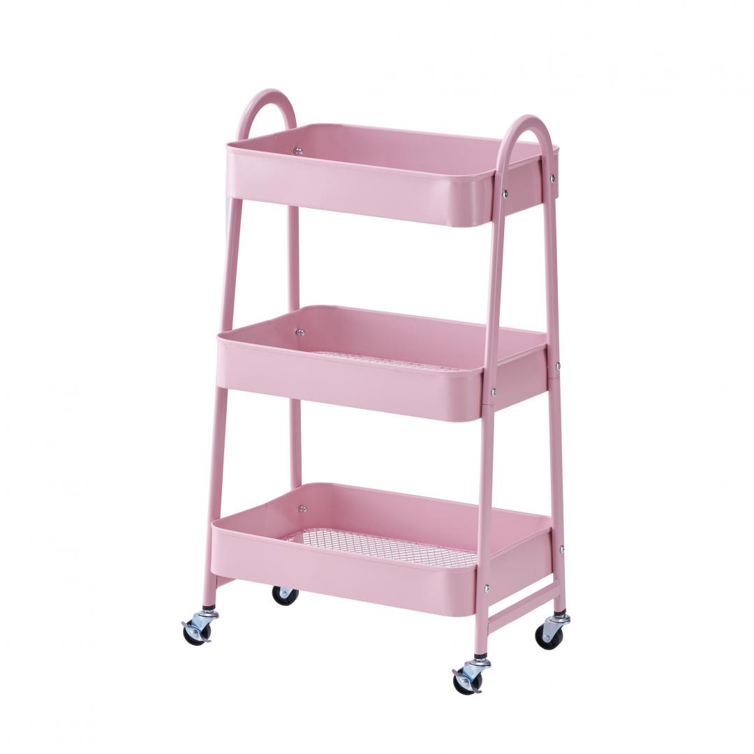 Carucior pentru depozitare cu 3 rafturi Roz