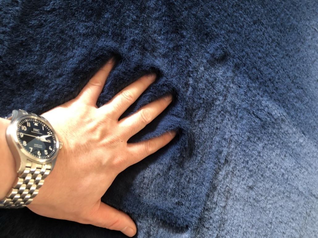 Covor shaggy soft blanita, inaltime totala 3.5 cm , greutate covor 2100g/m2 . Material : 100& poliester cu spate din bumbac. Culoare : Albastru inchis