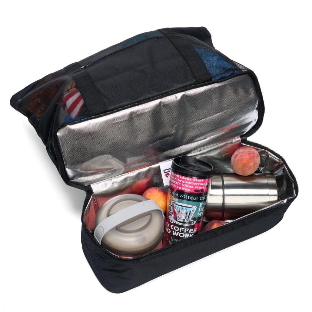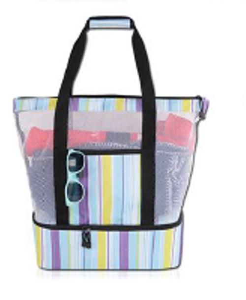 Material:PVC+plasa, cu un compartiment special pentru depozitare la rece, te poti bucura de prospetimea alimentelor atunci cand iesi. Ideala pentru plaja si picnic, avand o dimensiune mare. Diverse culori