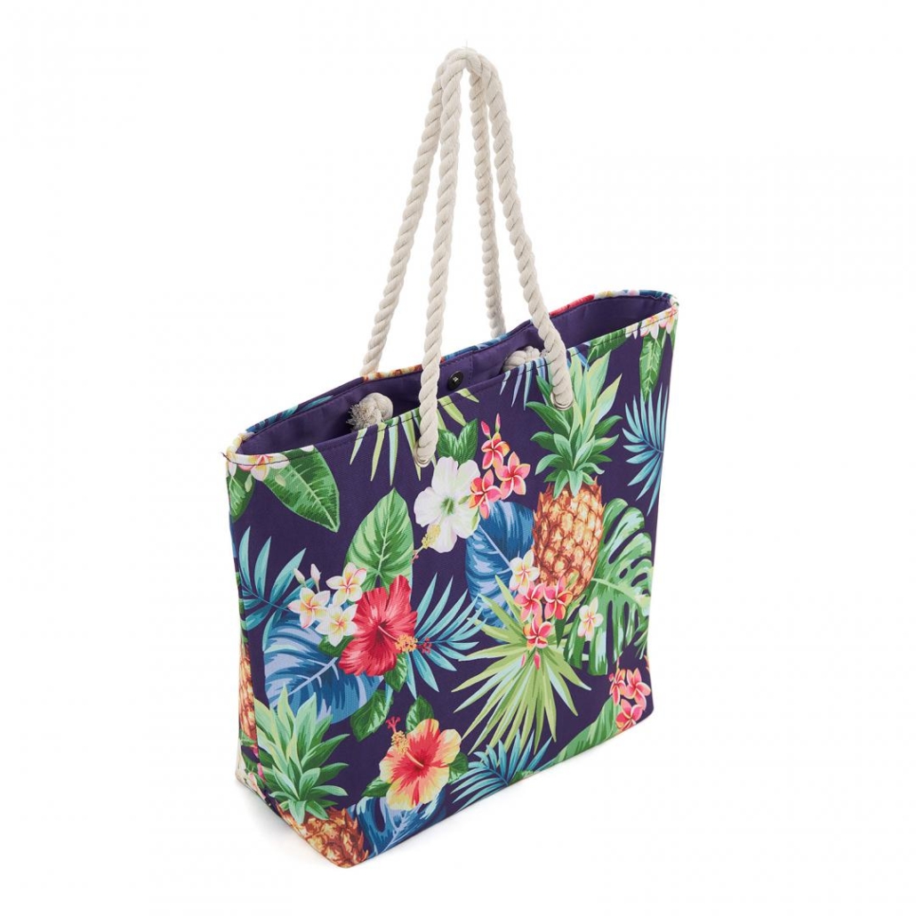 Geanta plaja Tropical, diverse decoruri Dimensiune: 50X38HX35X15.cm Material : panza tesuta canvas din poliester cu imprimeu digital