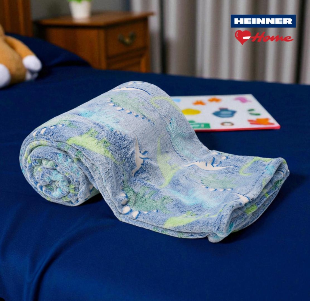 Imprimeul cu dinozauri se încarca la lumina si straluceste in intuneric. Ideala pentru pat sau relaxare pe canapea.