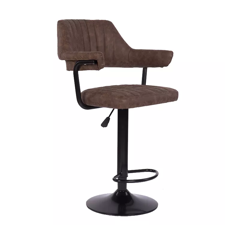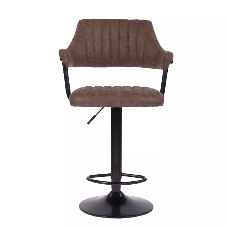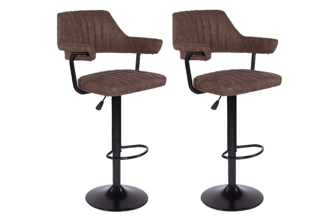 Set of 2 swivel bar stools Vintage Brown Seat dimensions: 52x60x98/118 cm Seat depth: 36 cm / Seat width 42 cm / Adjustable seat height 65-85 cm Material: black metal base with footrest, plastic seat covered in ecological leather upholstery, foam filling. Gas lift mechanism that ensures a good seat height adjustment. The seat rotates 360 degrees Maximum weight supported 130kg
