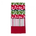 Setul contine 2 prosoape printate si unul uni rosu . Dimensiune prosop 38×64 cm , 60gr/buc