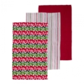 Setul contine 2 prosoape printate si unul uni rosu . Dimensiune prosop 38x64 cm , 60gr/buc