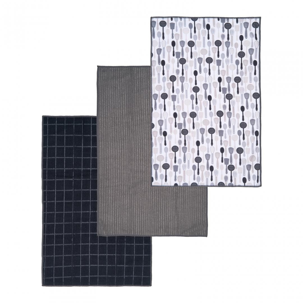 „Set 3 Prosoape Microfibra 40X40cm Kitchen Material: 100 poliester, 35gr/bucSetul contine 2 prosoape printate si unul uni „