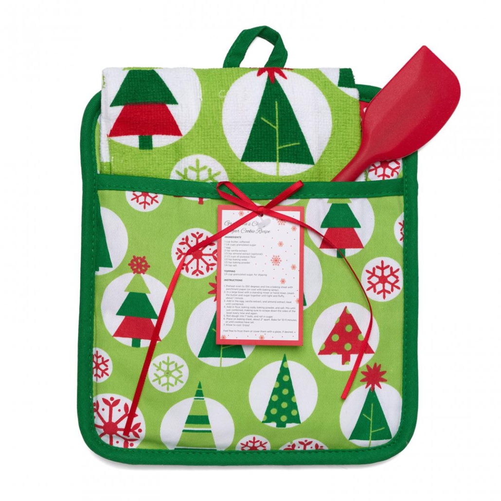 3 pcs kitchen set XMS The set contains a pot holder 20x23 cm (100 cotton) , a kitchen towel 38x64 cm (100 cotton) and a silicone spatula 21x4 cm