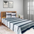 Setul contine o cuvertura de pat dimensiune 200x220 cm si 2 fete de perna decorative 45x45cm . Fete de perna se inchide cu fermoar.
